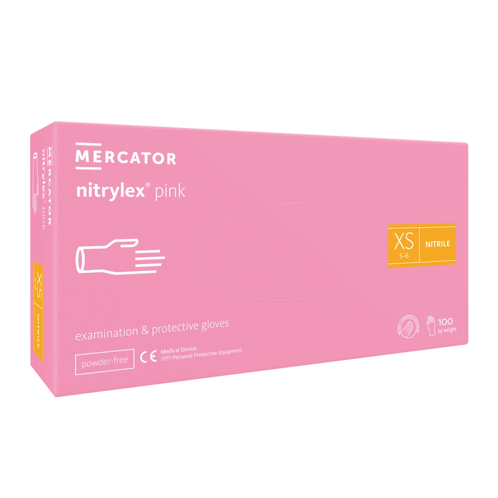 Nitrylowe rękawiczki Mercator Nitrylex Pink w kolorze różowym to niejałowy wyrób medyczny klasy I oraz środek ochrony indywidualnej kategorii III. Rękawice są odporne na przenikanie mikroorganizmów (wirusów, grzybów i bakterii), co umożliwia ich wszechstronne zastosowanie.